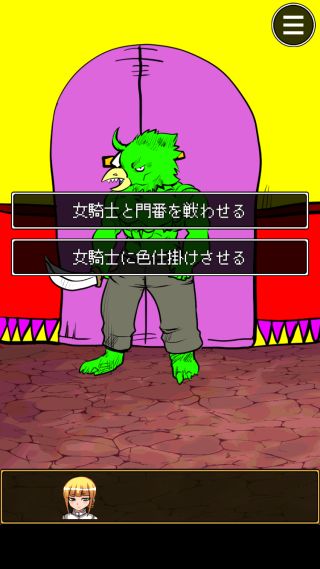 ステージ10で、門番の選択肢で『女騎士と門番を戦わせる』を選択する。