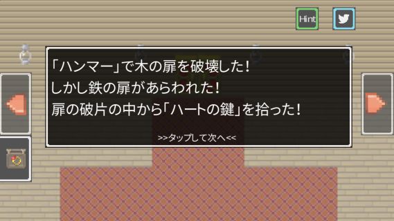 右に移動して、右の壁の鍵穴に「ハートの鍵」を使う。