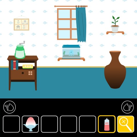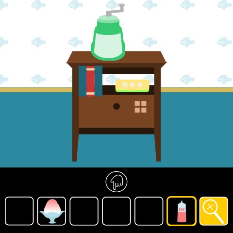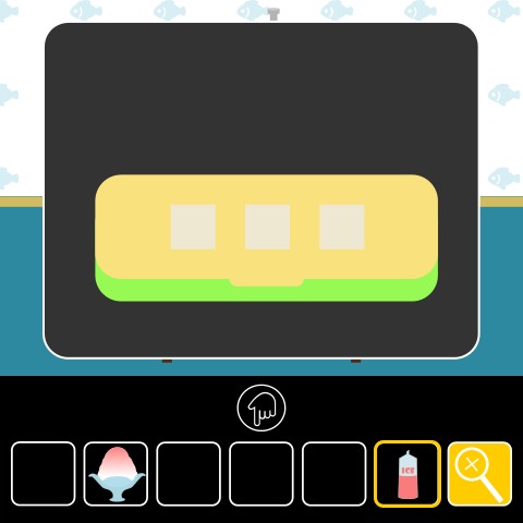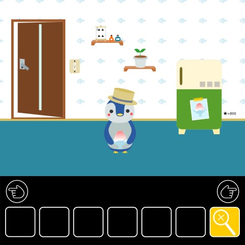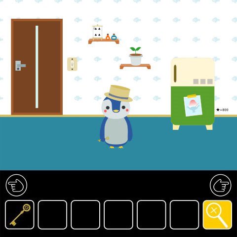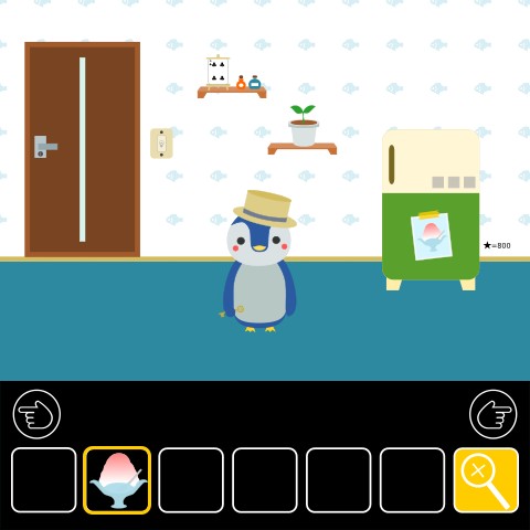 反対側に移動して、ペンギンに「かき氷」を渡して「カギ」を入手。