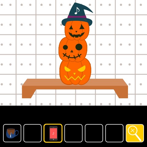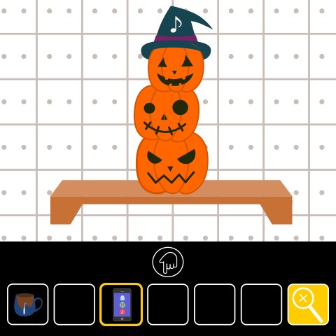 左上のカボチャの前に移動して、「スマートフォン」を拡大。