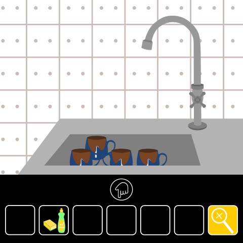 シンクを拡大して、4つの「汚れたカップ」を置く。