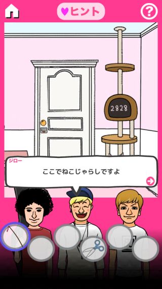 キャットタワーの猫に「ねこじゃらし」を使って、『2828』を確認。