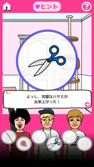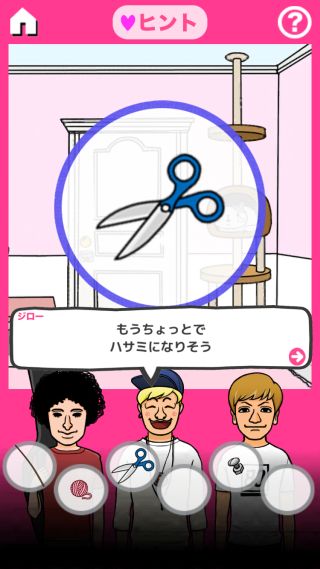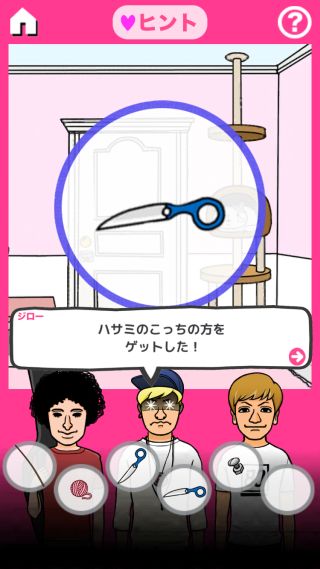 キャットタワーの上から「ハサミのこっちの方」を入手して、「ハサミのあっちの方」と組み合わせる。