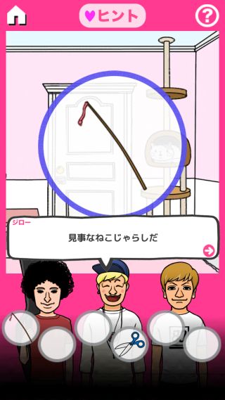 「ハサミ」で切って、「棒」を組み合わせて「ねこじゃらし」を入手。
