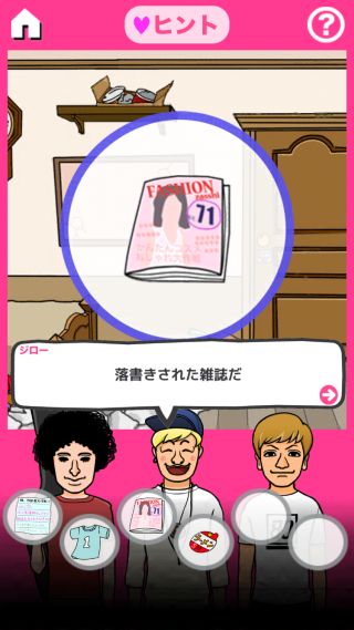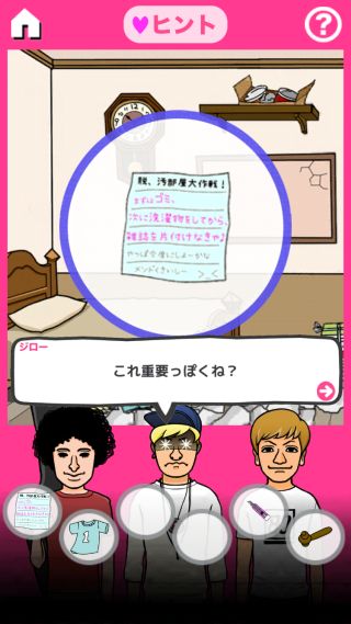 「メモ」を入手して、『ゴミ、洗濯物、雑誌』を確認。