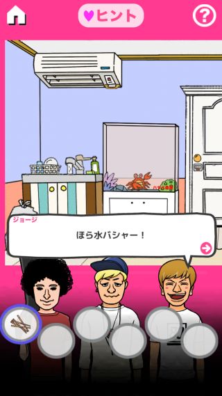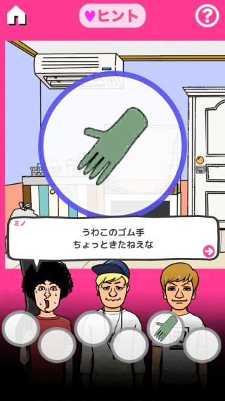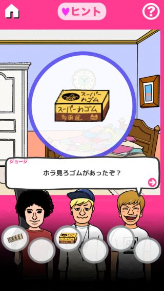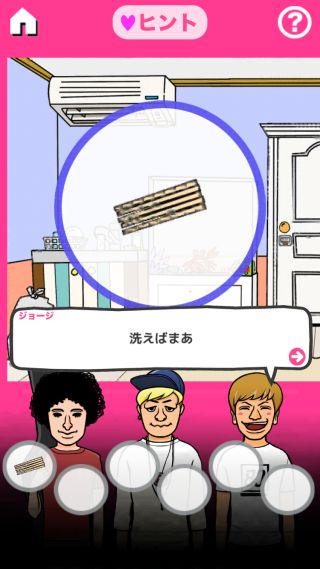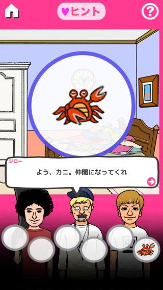 右に移動して、ベッドの上の「カニ」を「ゴム手袋」を使って入手。