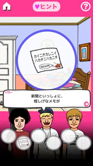 左の雑誌のヒモを「カニ」で切って、「メモ」を入手。