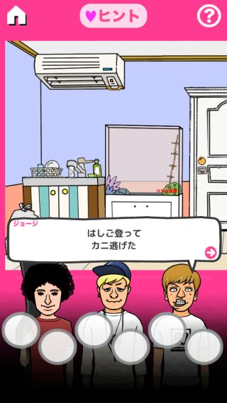 扉の左のケースに「ハシゴ」を使って、カニを脱走させる。