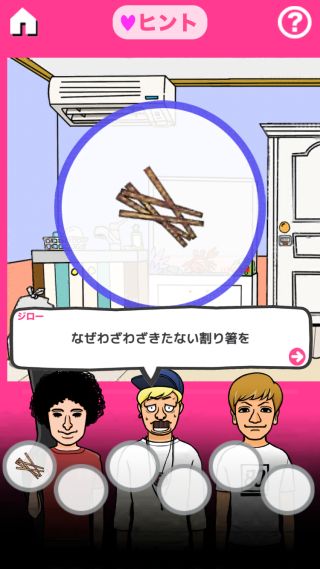 右下から「輪ゴム」を入手して、「割り箸」と組み合わせて「ハシゴ」を作る。
