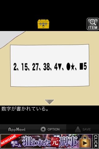 ポスターをめくって暗号を確認。この数列の法則は『2』から『15』までが『13』、『15』から『27』までが『12』というように『11、10、9、8』と足されている。