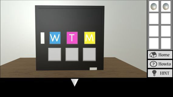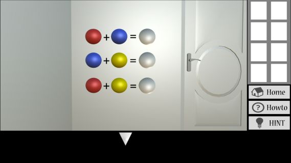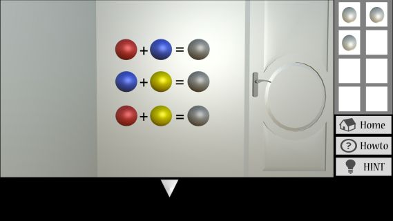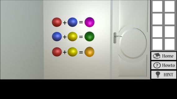 3つの「ボール」をはめて、2色を混ぜ合わせた時の色『上=紫、中=緑、下=橙』に合わせる。