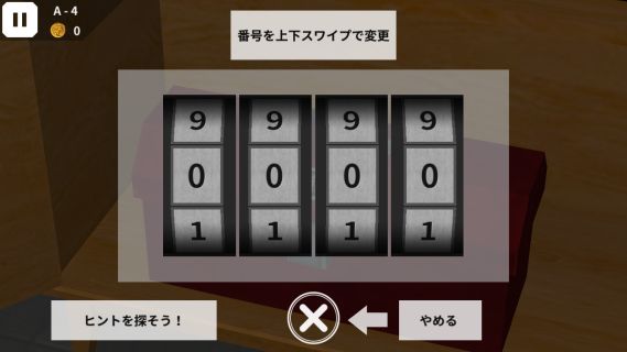 脱出ゲーム : 謎の金貨 無料 5.0 評価する 送信する Wasabi Applications ステージ4 机の前へ。 写真立てを裏返して、『3186』を確認。 棚の扉を開ける。 金庫を『3186』に合わせる。 中から「カギ」を入手。 扉に「カギ」を使う。 エリアA ステージ1 ステージ2 ステージ3 ステージ4 ステージ5 ステージ6 ステージ7 ステージ8 エリアB ステージ1 ステージ2 ステージ3 その1 ステージ3 その2 ステージ4 その1 ステージ4 その2 ステージ5 その1 ステージ5 その2 ステージ6 その1 ステージ6 その2 ステージ7 ステージ8 その1 ステージ8 その2 ステージ8 その3 ステージ8 その4 金貨の場所 A-1 A-2 A-3 A-4 A-5 A-6 A-7 A-8 B-1 B-2 B-3 B-4 B-5 B-6 B-7 B-8