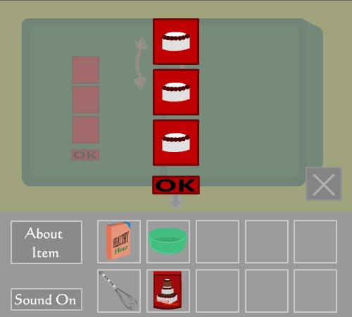 「ベーキングパウダー」を入手して、3段のケーキの色と形を確認。