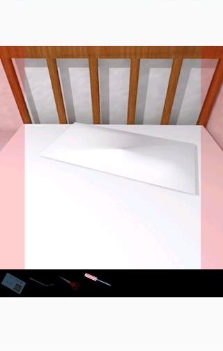 右のベッドの側面に「バール」を使って、「ハサミ」を入手。
