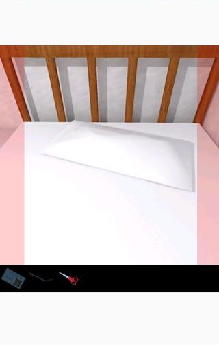 ベッドの枕を拡大して、「ハサミ」を使う。