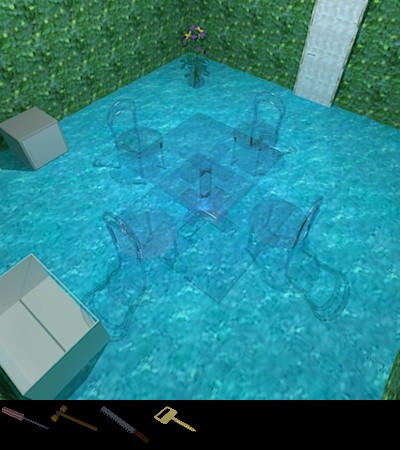 扉の板を「ノコギリ」で外して、「カギ」を使って脱出。