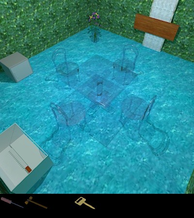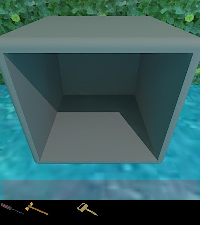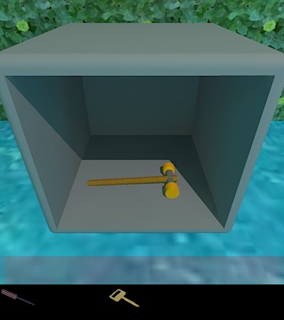 「ハンマー」で左下の箱のガラスを割って、「ノコギリ」を入手。