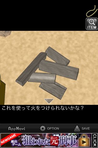 右の炭を調べて『これを使って火を~』のメッセージを出す。