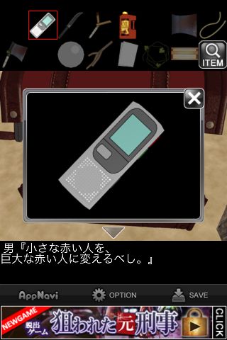 「ボイスレコーダー」を再生して『小さな赤い人を~』のメッセージを出して、小屋の中の火の前に移動。