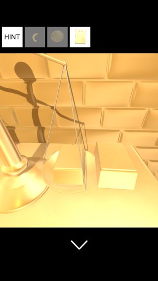 右の皿に「金塊」を置き換えて、釣り合わせる。