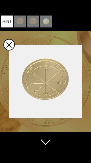 「金貨」の1枚をよく見ると、右上から左下にかけての矢印がある。