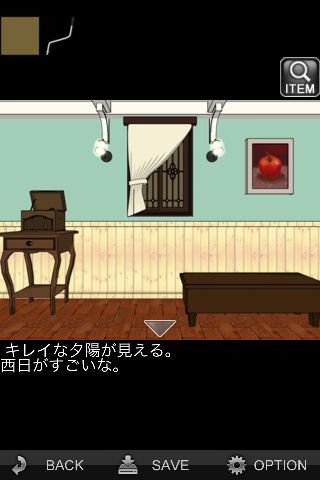 窓を調べて『西日がすごいな』のメッセージを出して、「レバー」の文字を拡大する。