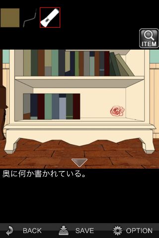 右に移動して、本棚の前へ。