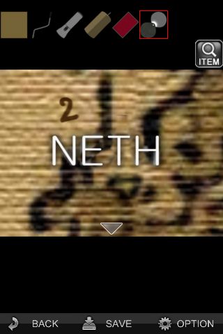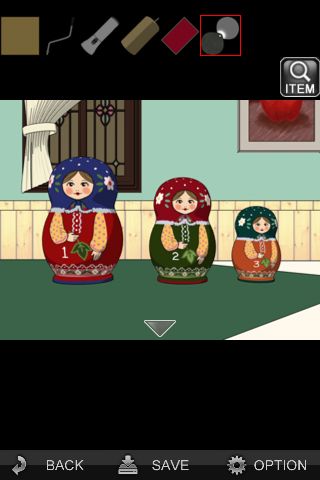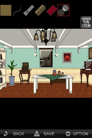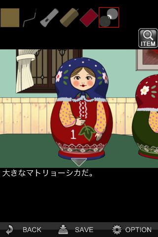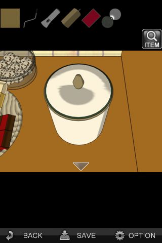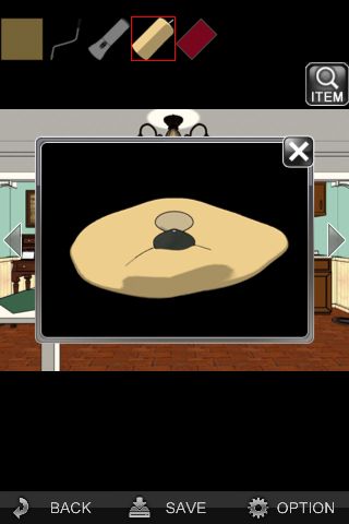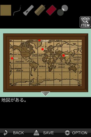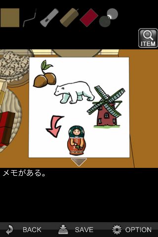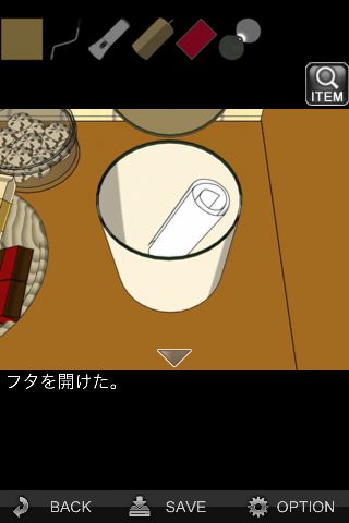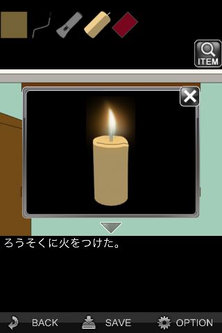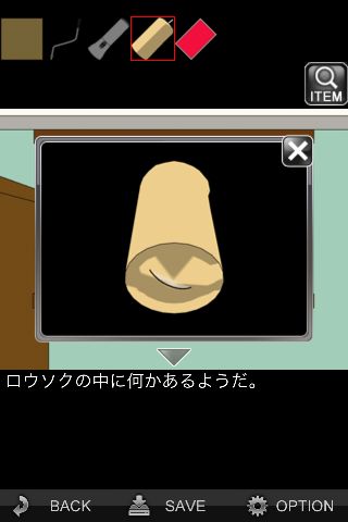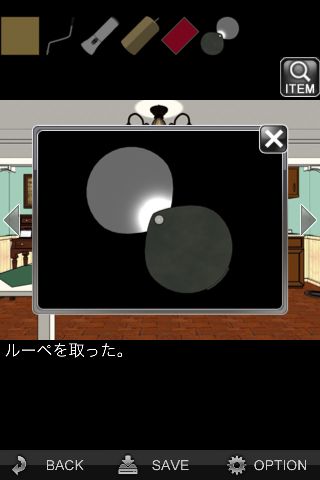 手前に移動して「ロウソク」を調べると、溶けた中から「ルーペ」を入手。