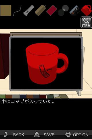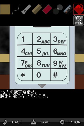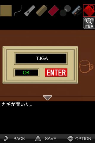 携帯電話のキーを拡大。「コップ」に書かれていた数字『8542』を携帯電話で1回ずつ押すとアルファベットで『TJGA』となる。