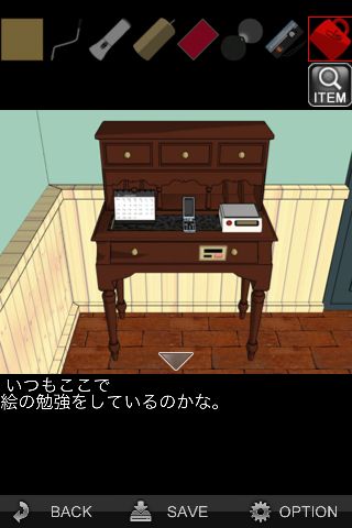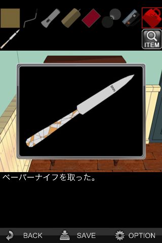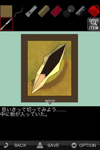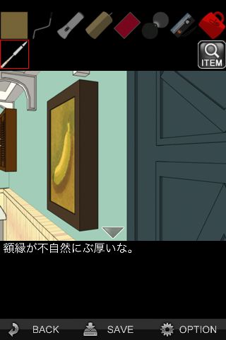 側面を調べて『額縁が不自然に~』のメッセージを出して、「ペーパーナイフ」で切る。