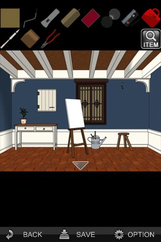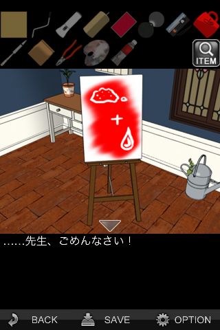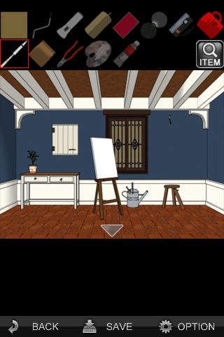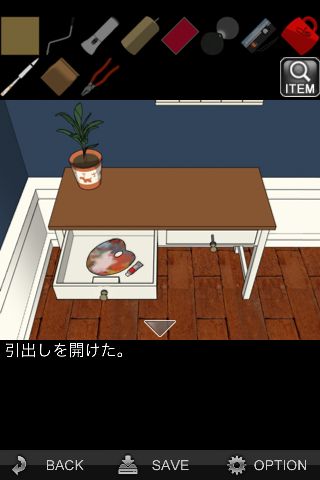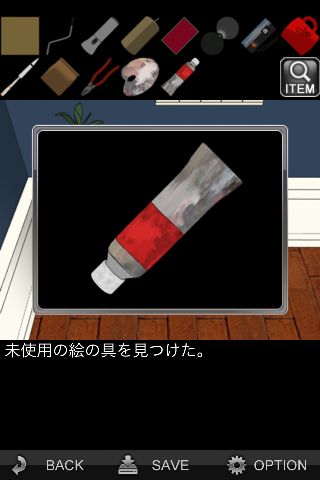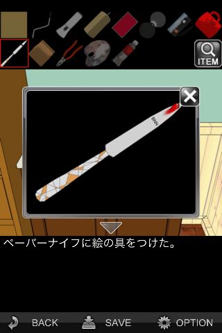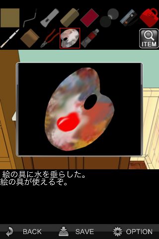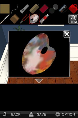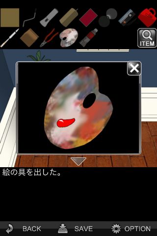 隣の部屋に移動して、キャンバスに「ペーパーナイフ」の絵の具を塗る。
