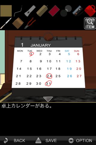 スタート地点の左の棚にあるカレンダーに丸が書かれた数字と照らし合わせ、シンクに書かれた数字の順番で並び替えると『24131』になる。