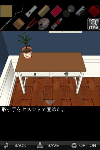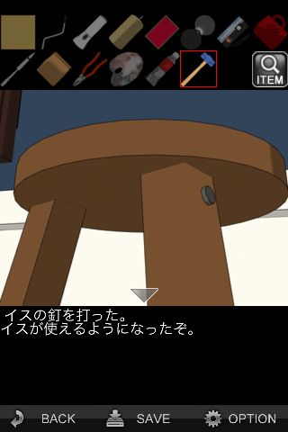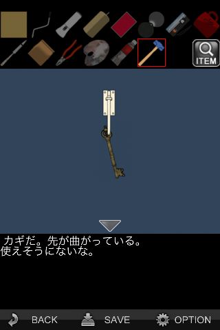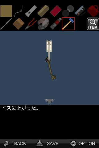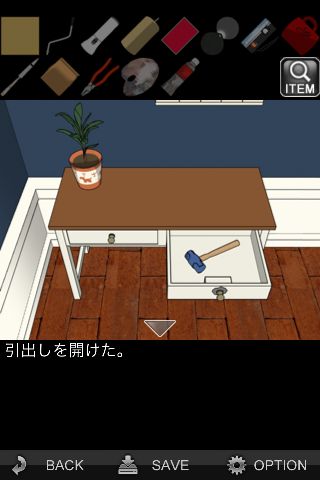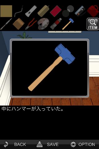 一度手前に移動して戻ると固まっているので、開けて「ハンマー」を入手。