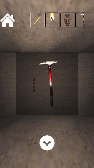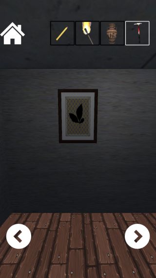 右下から「ピッケル」を入手して、来た道を戻って人の絵の前へ。