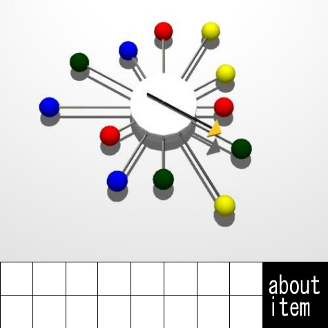 上の時計を拡大して、針の場所から『時計回り30°=黄、反時計回り150°=青、時計回り90°=青』を確認。
