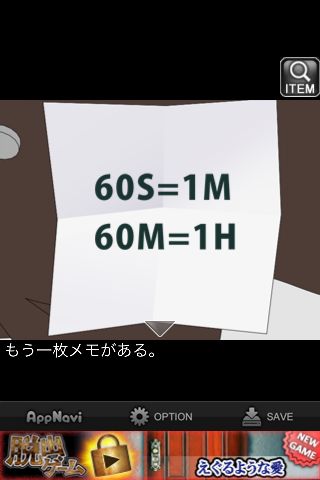 2枚のメモを確認。2枚目のメモは『60秒=1分』『60分=1時間』を表している。