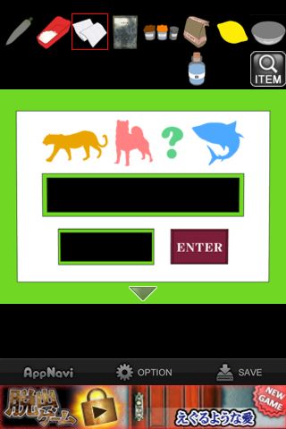 『Leopard→Dog→?→Shark』なので、『?』に入る動物(パスワード)はオレンジの本の中から『Grampus』となる。