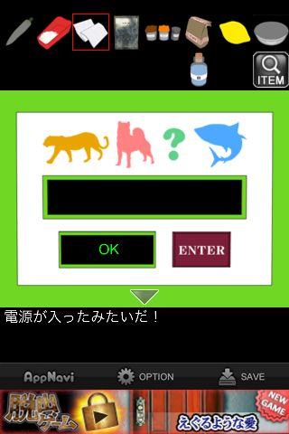 装置の絵は本棚のオレンジの本にあった動物がヒントになっていて、それぞれを英語に直したものをしりとりで繋いでいく。