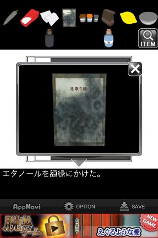 「額縁」に「エタノール」をかける。