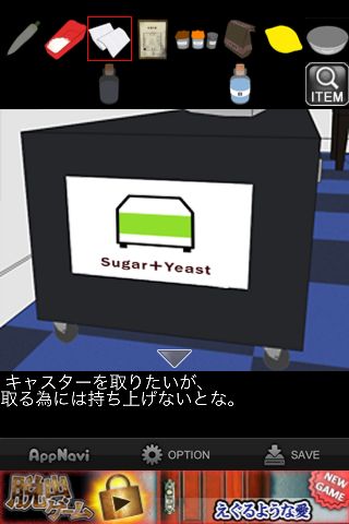 テレビ台の左側面で、キャスターを調べて『取る為には持ち上げないとな』のメッセージを出す。