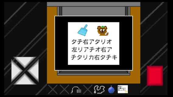 『チリトリ、タヌキ』から、文章から『チリ、タ』を消すと『右アオ左アオ右アカ右キ』となる。