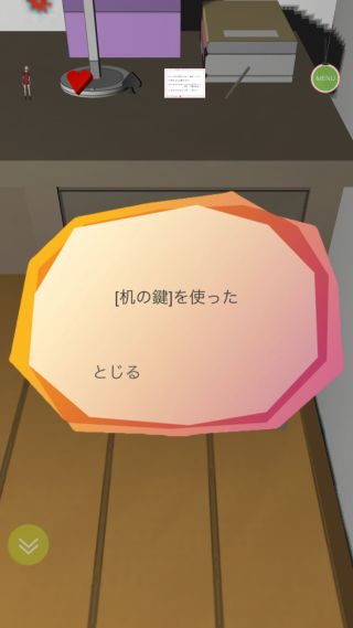 机の引き出しを拡大して、一番下の引き出しに「黒いカギ」を使う。