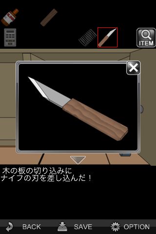 「木の板」に切り込みがあるのを確認して、「ナイフの刃」を差し込む。