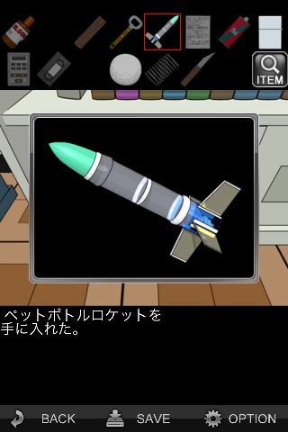 上のグラスの水を「ペットボトルロケット」に入れる。