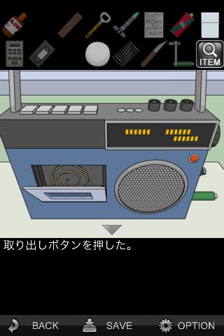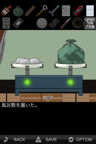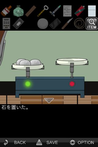 脱出ゲーム: 真夜中の同窓会 無料 3.7 評価する 送信する IDAC CO.,LTD.(WaveA PTE.LTD.) 攻略その10 ラジカセの右側面を調べる。 「レバー」を取り付けて1周させる。 ラジカセの取り出しボタンを押して「ロープ」を入手。 右奥にある砂を拡大。 「ロープ」で閉じて「風呂敷」を入手。 棚から左に進んで秤の前へ。 「石」と「風呂敷」を置く。 攻略その1 攻略その2 攻略その3 攻略その4 攻略その5 攻略その6 攻略その7 攻略その8 攻略その9 攻略その10 攻略その11