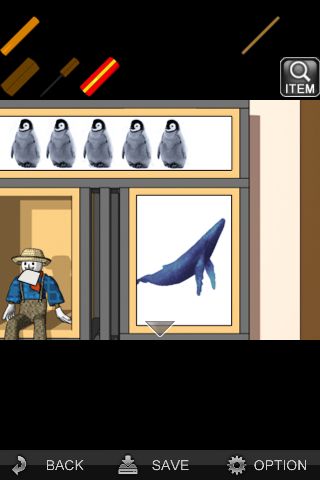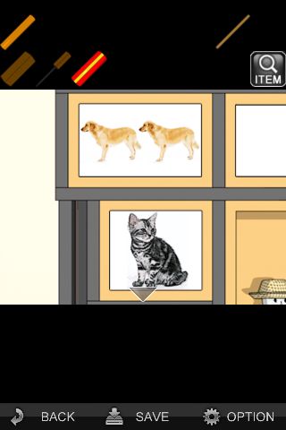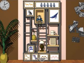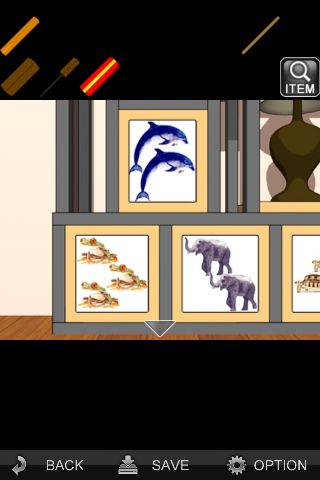 この飾り棚は全体があみだくじになっていて、『案山子→クジラ→犬→猫→ペンギン』の順で辿って行くと『豚→イルカ→亀→象→カエル』になる。