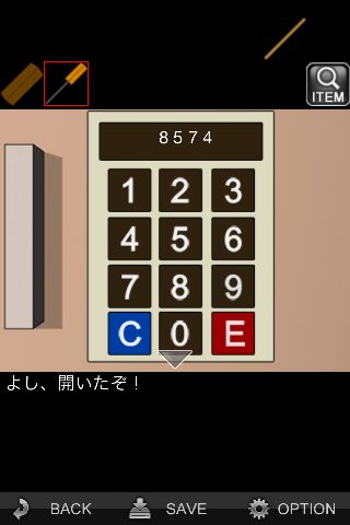 装置にパスワードを入力。ここまで見てきた市松模様のプレート4つを重ねると4桁の数字になる。