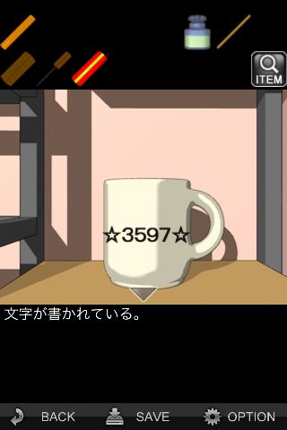 飾り棚に戻り、コーヒーカップに書かれている数字を確認。