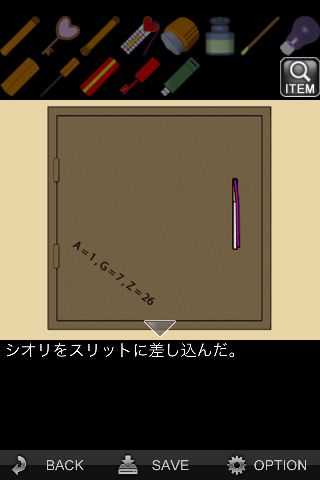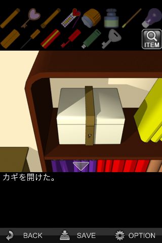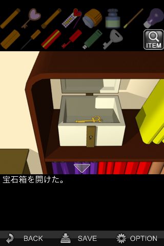 脱出ゲーム: 妄想の果て 無料 0 評価する 送信する IDAC CO.,LTD.(WaveA PTE.LTD.) 攻略その8 「シオリ」をハッチのスリットに差し込んで開ける。 装置に『SLLN』を入力。 中から「カギ」を入手。 本棚の前へ。 左上の宝石箱に「カギ」を使う。 中から「カギ」を入手。 スタート地点の扉の前へ。 「カギ」を使って脱出。 攻略その1 攻略その2 攻略その3 攻略その4 攻略その5 攻略その6 攻略その7 攻略その8
