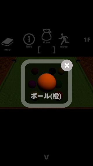 Mansion-洋館-(脱出ゲーム) 無料 0 評価する 送信する 攻略その3 奥の左の部屋に入る。 机の左のペン立てに「ナイフ」を入れる。 2階に移動して、右へ。 奥の左の部屋に入る。 奥に進んで、「牢のカギ」で扉を開ける。 「ドアノブ」を入手して、1階に戻る。 右に移動して、奥へ。 左の扉に「ドアノブ」を取り付けて、部屋に入る。 ビリヤード台から「ボール(橙)」を入手。 攻略その1 攻略その2 攻略その3 攻略その4